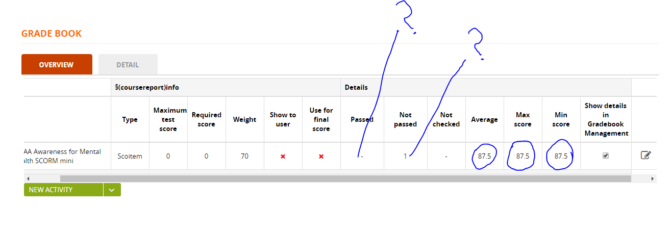 Ok i understand what you are saying. My scorm reports to the lms "completed" when the score is above or equal to passing marks. But in the grade book why its showing not passed =1 rather it should show passed =1