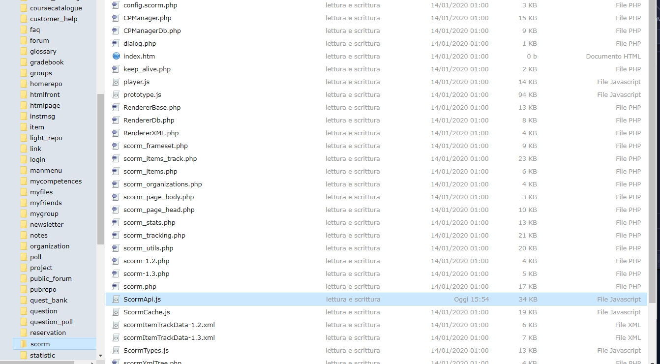 - ho scaricato ScormAPI.js ed ho sostituito nella cartella scorm in modules il file precedente. (screenshot allegato)