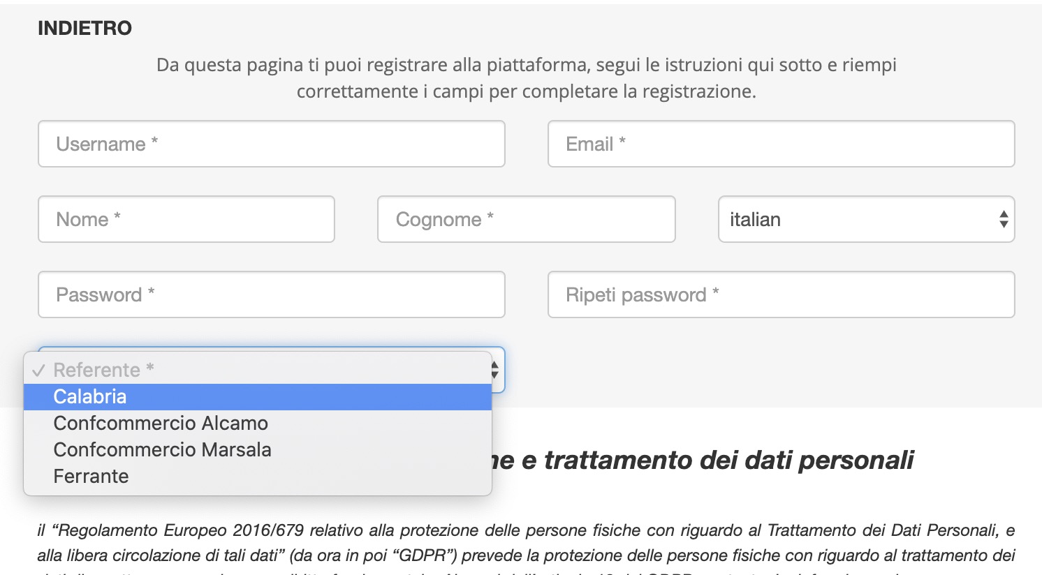 Nella piattaforma ho vari nodi, nelle impostazioni utilizzo "Tipo di utilizzo del codice registrazione" e nel menu a discesa selezione "Chiedi un codice di accesso all'organigramma, il codice sara scelto dal menu a tendina".