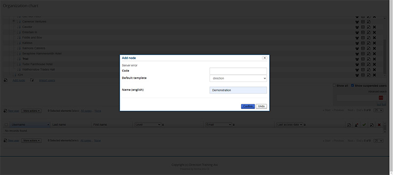 I just came across an error, I am running Forma 4.05 php.8.0. System through a a server error when adding a child node to a folder (see image).