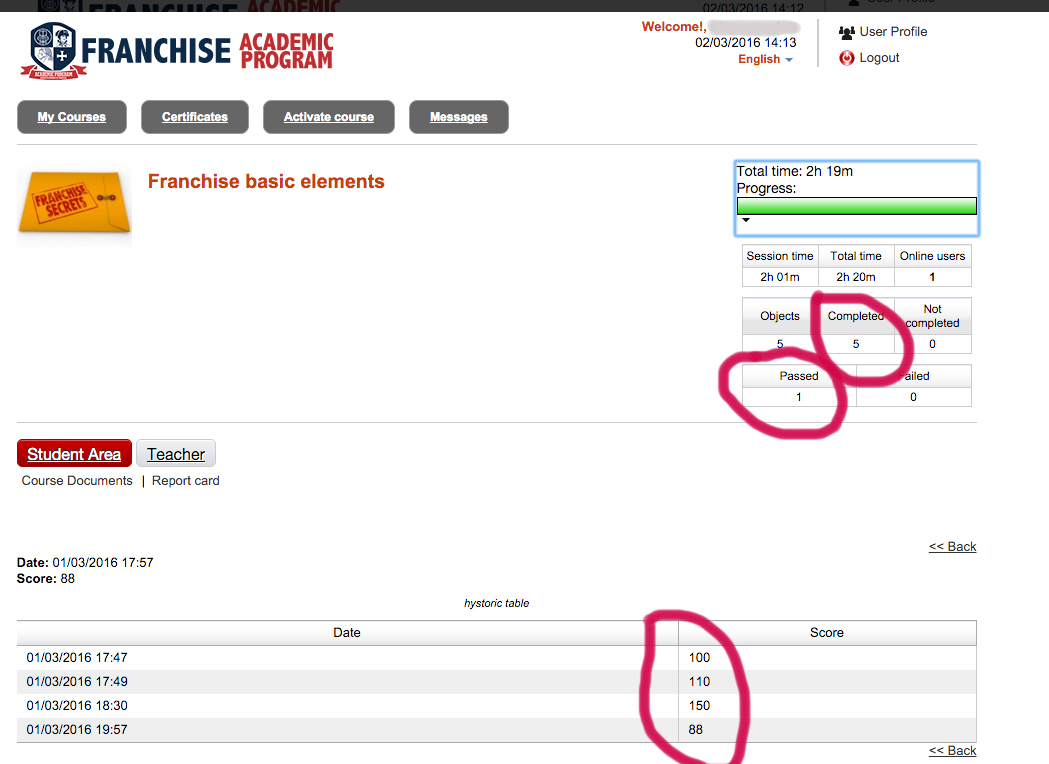 Studen have still status In progress and not completed.