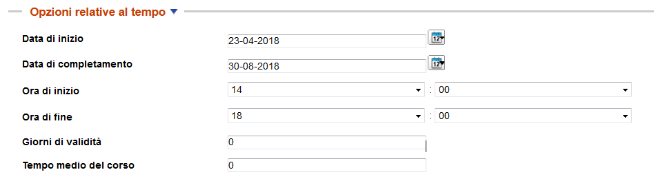 mi fai uno screenshot delle opzioni relative al tempo del corso e dell'edizione?