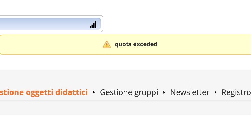 Salve, mi sta capitando una cosa strana, carico lo scorm sul corso e mi da questo errore: Errore nell'esecuzione dell'operazione richiesta "quota exceded", e quindi non fa caricare lo scorm. Sapete da cosa possa essere causato?