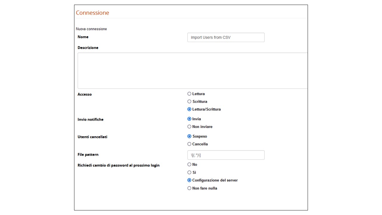 Configuro il connettore docebo-users (nell'immagine ho messo Lettura/Scrittura, ma ho provato anche solo con Scrittura)
