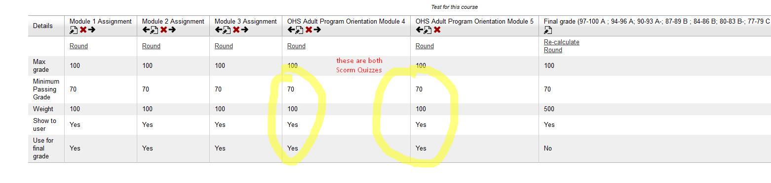 Note that if hand-input activities are only used, there are NO issues to calculate the final grade correctly. The issues are with SCORM quiz scores.