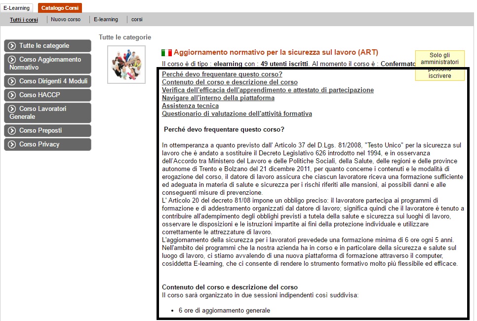 Vorrei eliminare tutta la descrizione del corso e mantenere solo la foto, il nome e le info del corso. (la parte nel riquadro da togliere)