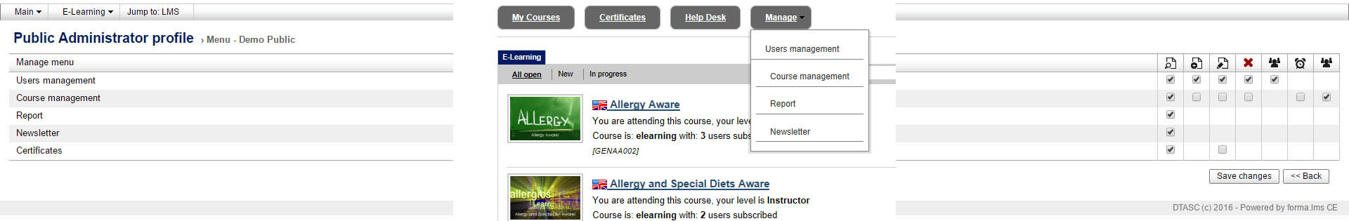In the public admins profile I have given them permission to see certificates but it doesn't show on the dropdown list, only User management, Course management, Report and Newsletter.