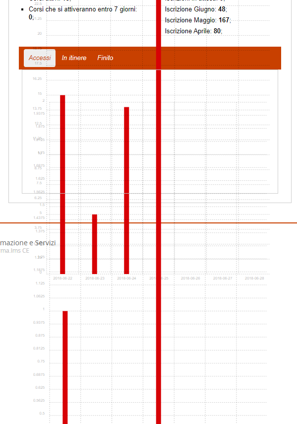 Ciao, ho effettuato l'upgrade su un db clone della nostra attuale piattaforma (per precauzione). Oltre a complimentarmi per la nuova veste grafica, vorrei segnalare quello che, apparentemente, sembra un bug dei nuovi grafici nella pagina di benvenuto.
