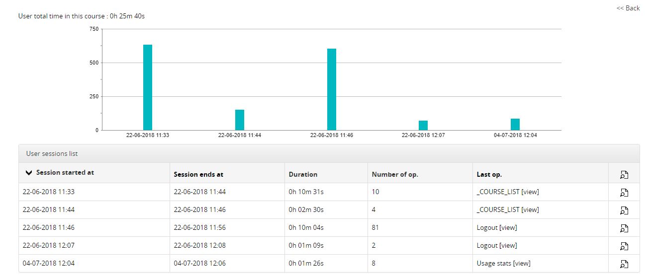è una lista delle sessioni effettuate dall'utente, con relativa durata e numero di operazioni svolte.