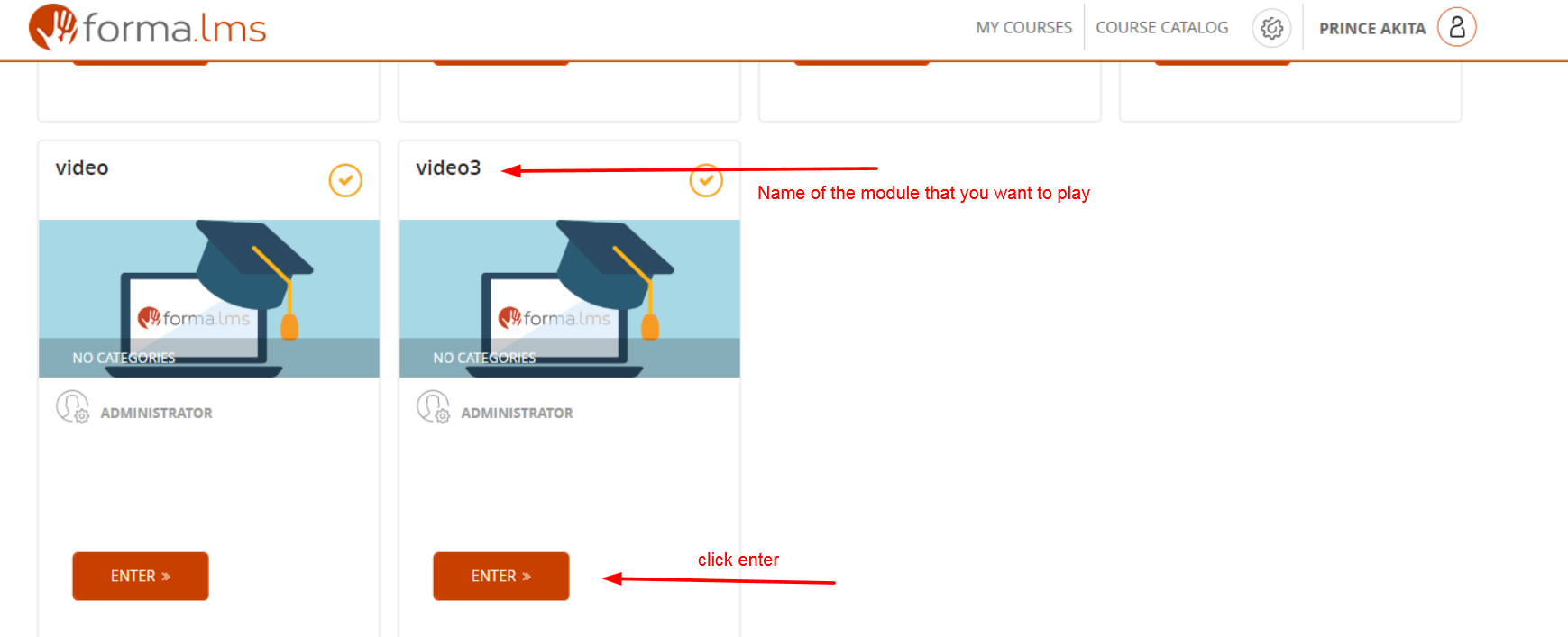 2) Click on the module that you want to play