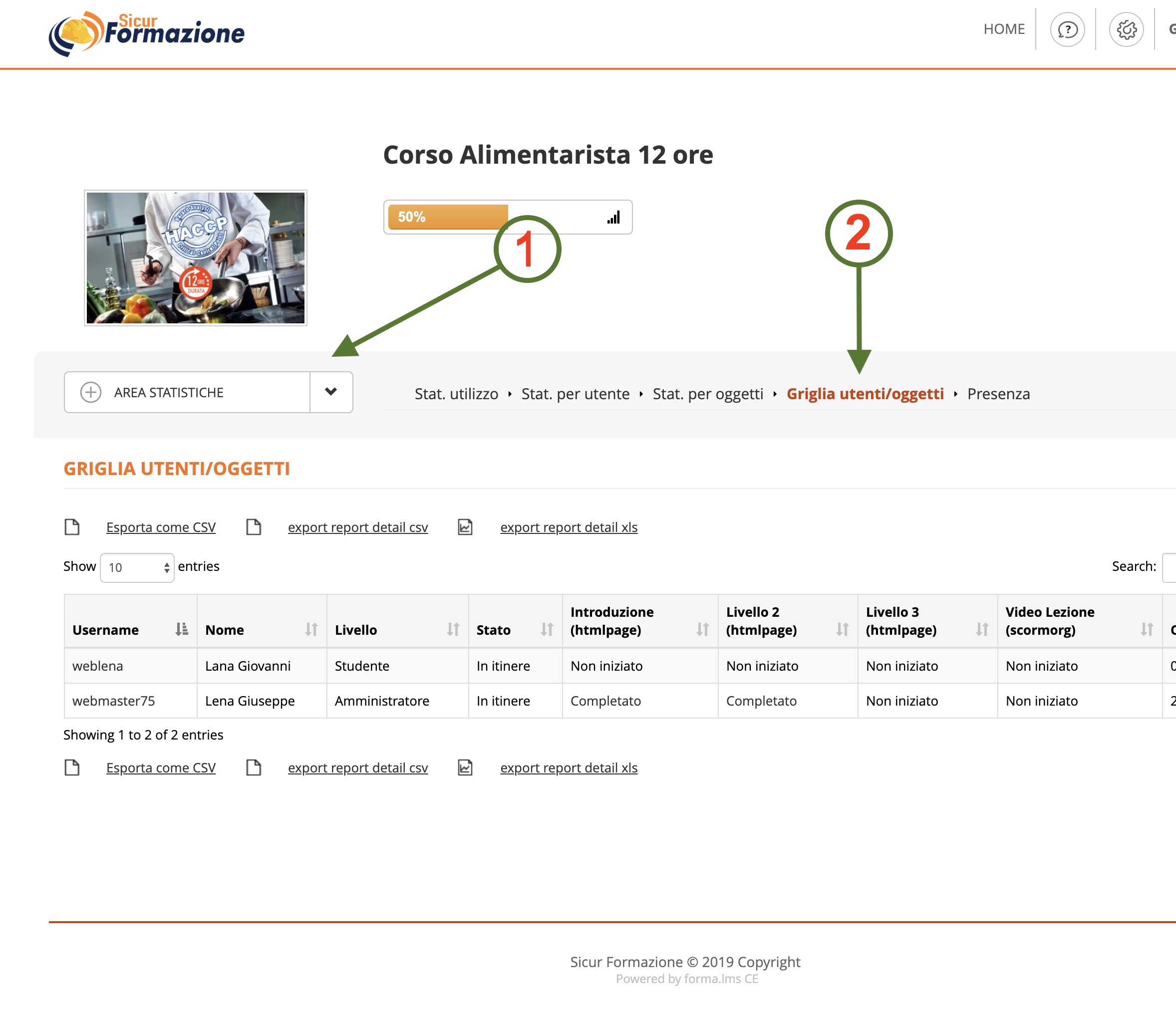 questo perché griglia utenti oggetti è una voce del menu del corso, non lo trovi in amministrazione.
