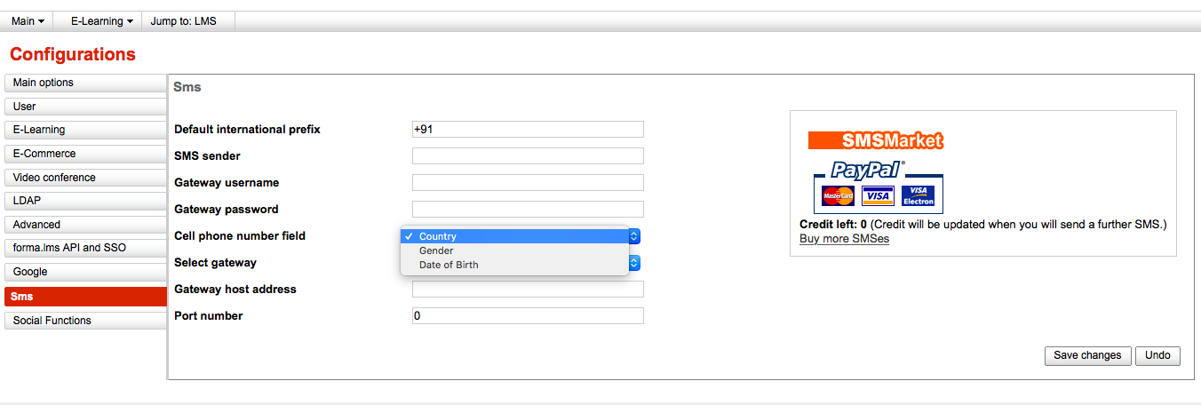 After doing the SMS required setting in the configuration tab I pressed the save button.