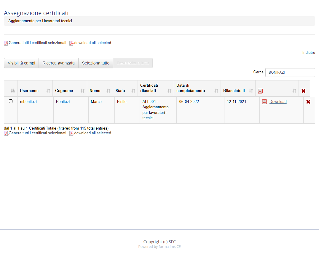 nella tabella dei certificati c'è una colonna con il titolo "Data di completamento" a cosa si riferisce?