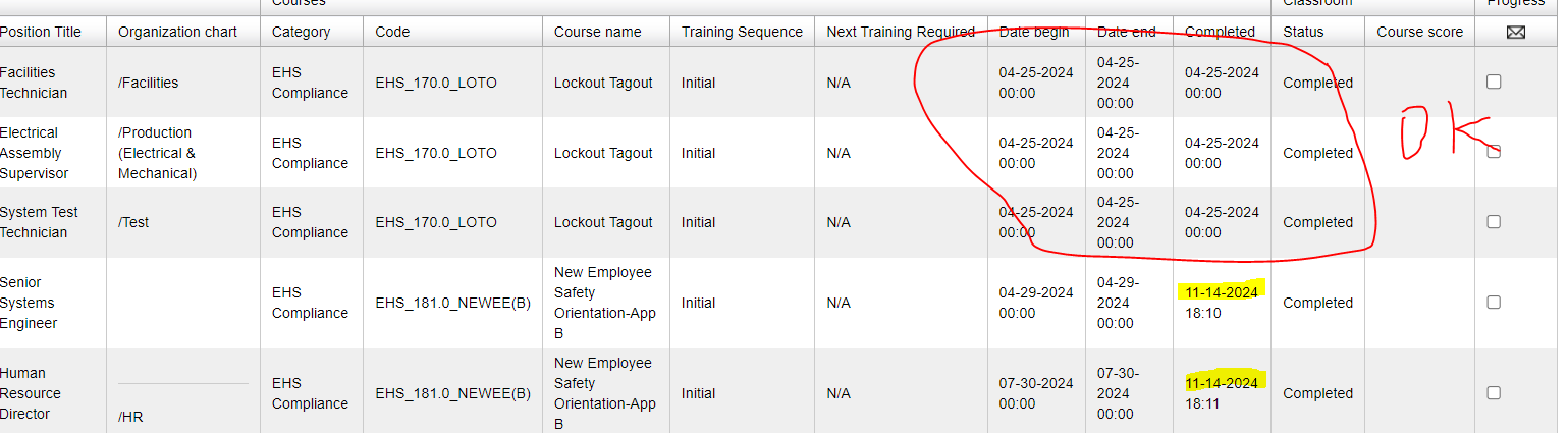 I am in the process of adding some training history for our employees. These are classroom courses that have taken place in the past. Up until yesterday, I was able to see the course completion date as the actual date of the training using the attendance feature. Now the system will not use the date as noted in the Classroom Calendar. It is using the date and time of the entry rather than the date checked of in the attendance screen.